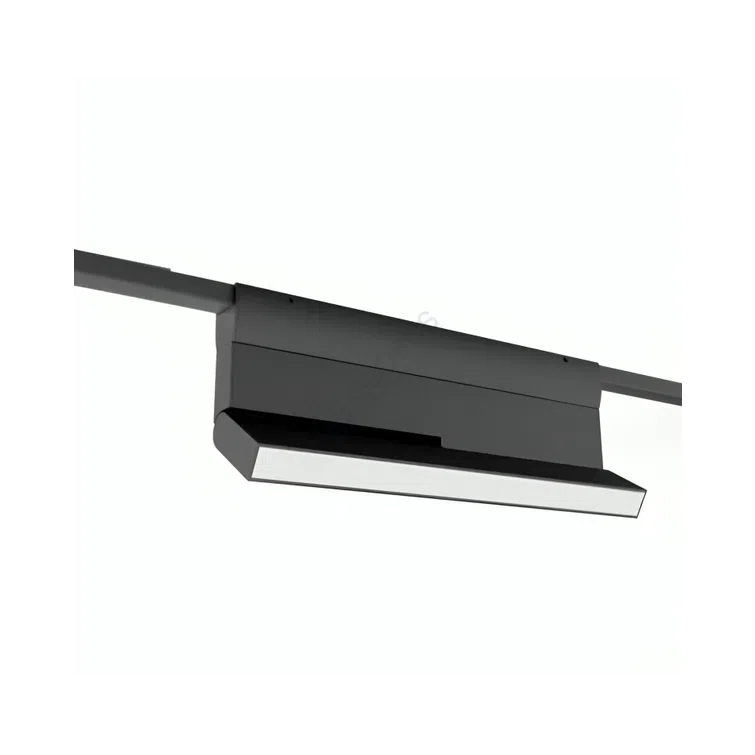 This modern track lighting fixture offers a sophisticated touch to any contemporary interior. Crafted from durable aluminum, its sleek profile and dark finish present a refined aesthetic that seamlessly integrates into various design schemes. The minimalist form ensures that the focus remains on the light it provides, enhancing the architectural elements of a space.