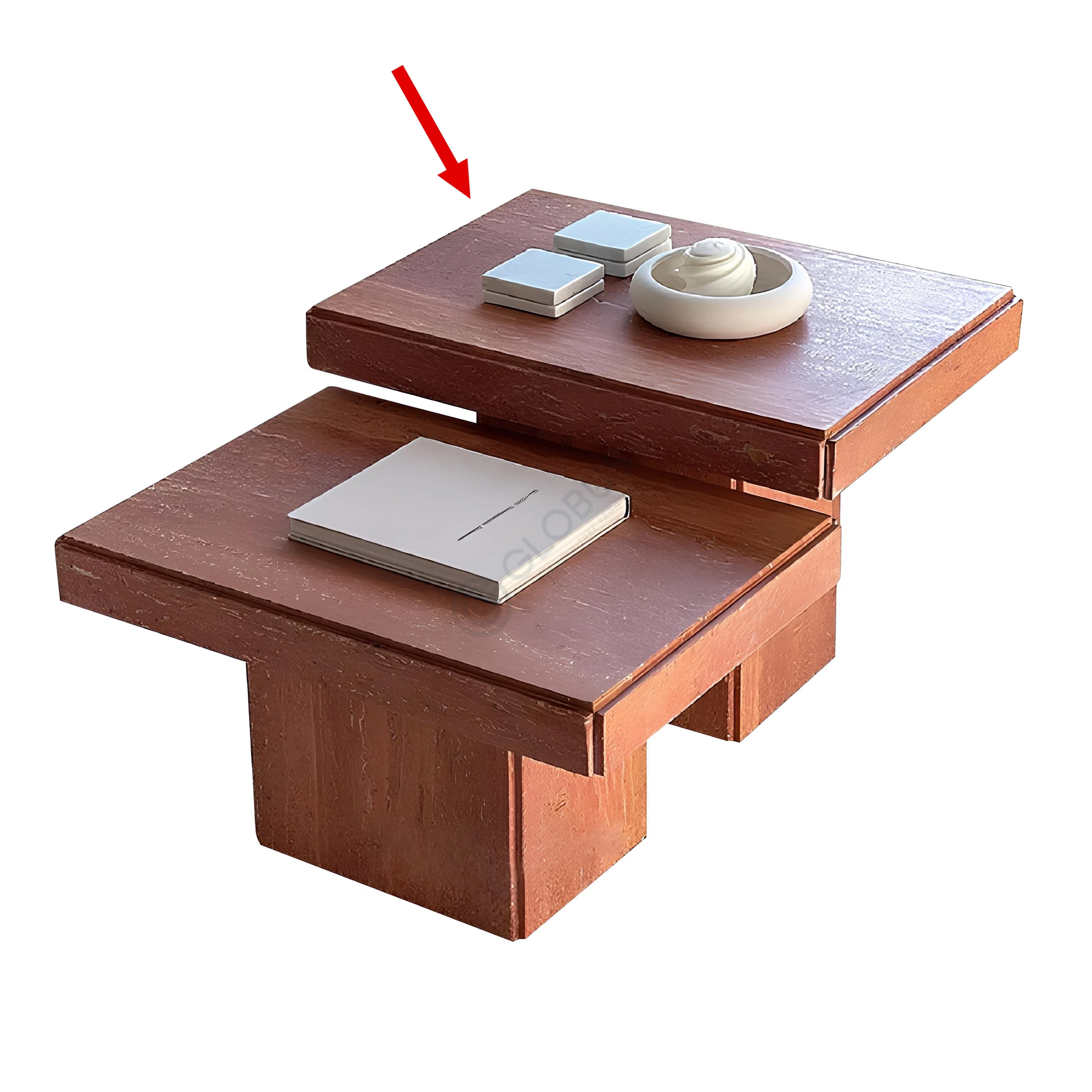 This modern coffee table is crafted entirely from luxurious travertine, showcasing the material's natural beauty in a sophisticated form. Its rich, earthy tone brings warmth and a distinct texture to any living space. Each surface reveals subtle variations in pattern, characteristic of natural stone.