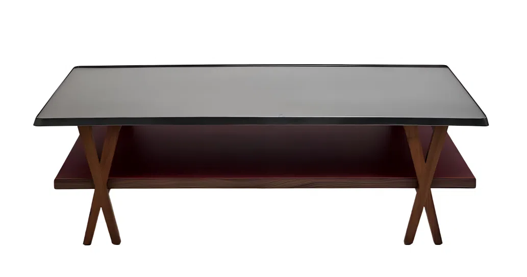 This modern console table introduces an elegant and refined presence to any interior. Its design thoughtfully combines clean lines with distinctive structural elements, creating a piece that is both visually engaging and highly functional.