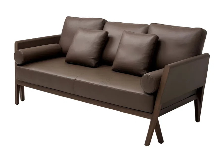 The console features a top crafted from natural marble, its unique veining adding a subtle artistry to the surface. Below, the sturdy frame utilizes solid wood and natural veneer, forming striking X-shaped legs that provide stability and a contemporary aesthetic. A practical lower shelf, beautifully finished with saddle leather, offers a luxurious texture and an ideal space for display or daily essentials.