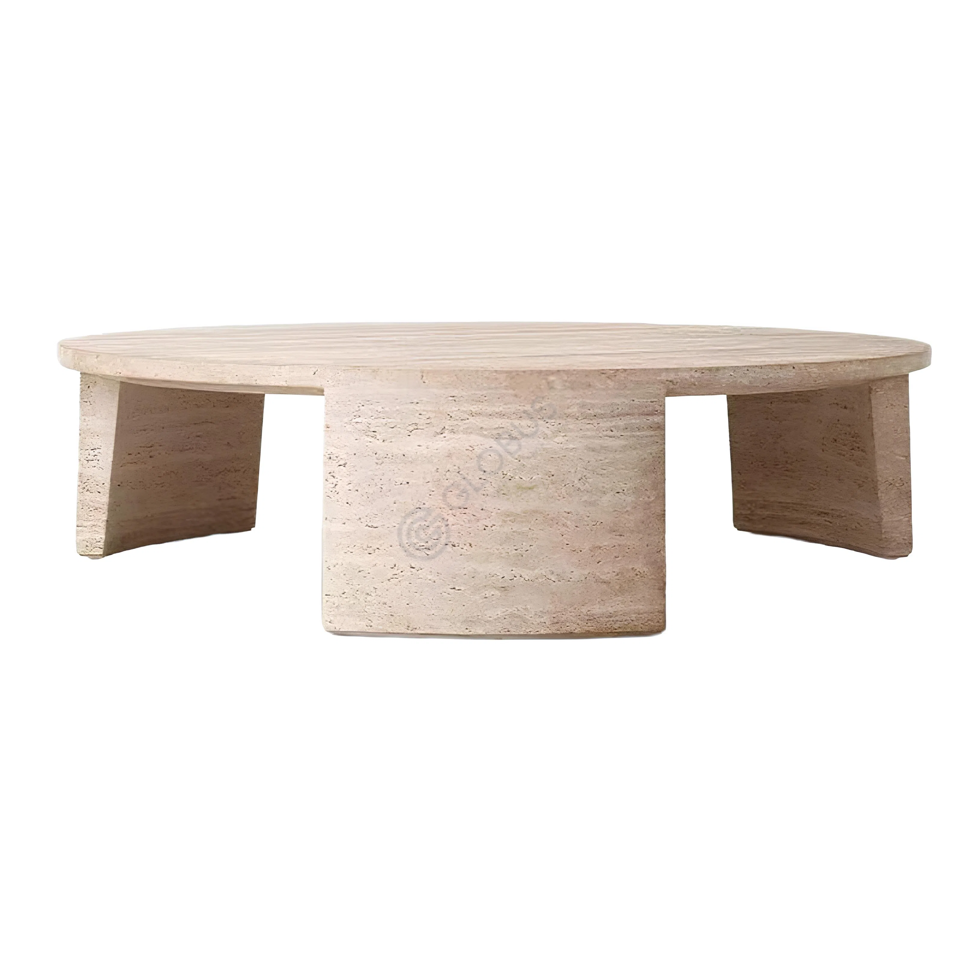 Travertine's distinct character is central to this piece. Each bed showcases the inherent variations of the stone, from delicate pores to natural veining, ensuring every item is unique. This durable material not only grounds the room with its solid form but also introduces a tactile element that enhances the overall calm and sophisticated atmosphere of the bedroom.