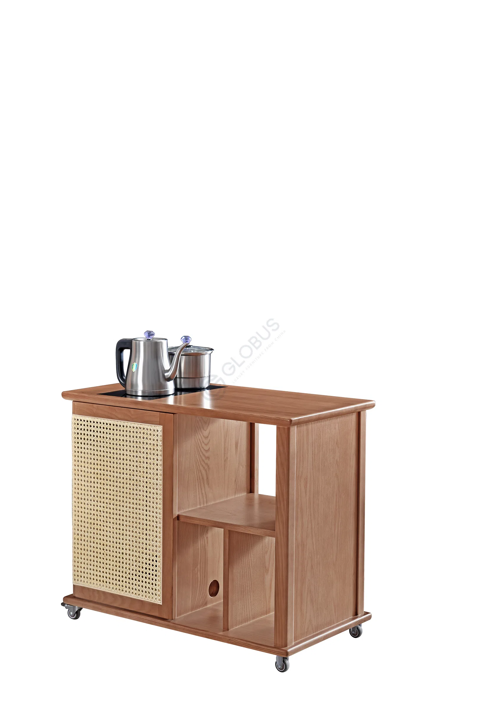 Designed for both utility and aesthetic appeal, this mobile sideboard features a compact frame that adapts to your changing needs. The top surface is equipped with an integrated heating station, providing a dedicated space for preparing tea or keeping refreshments at the ideal temperature. Its base is fitted with smooth-rolling casters, allowing you to move the unit effortlessly between rooms to serve guests or reconfigure your layout.