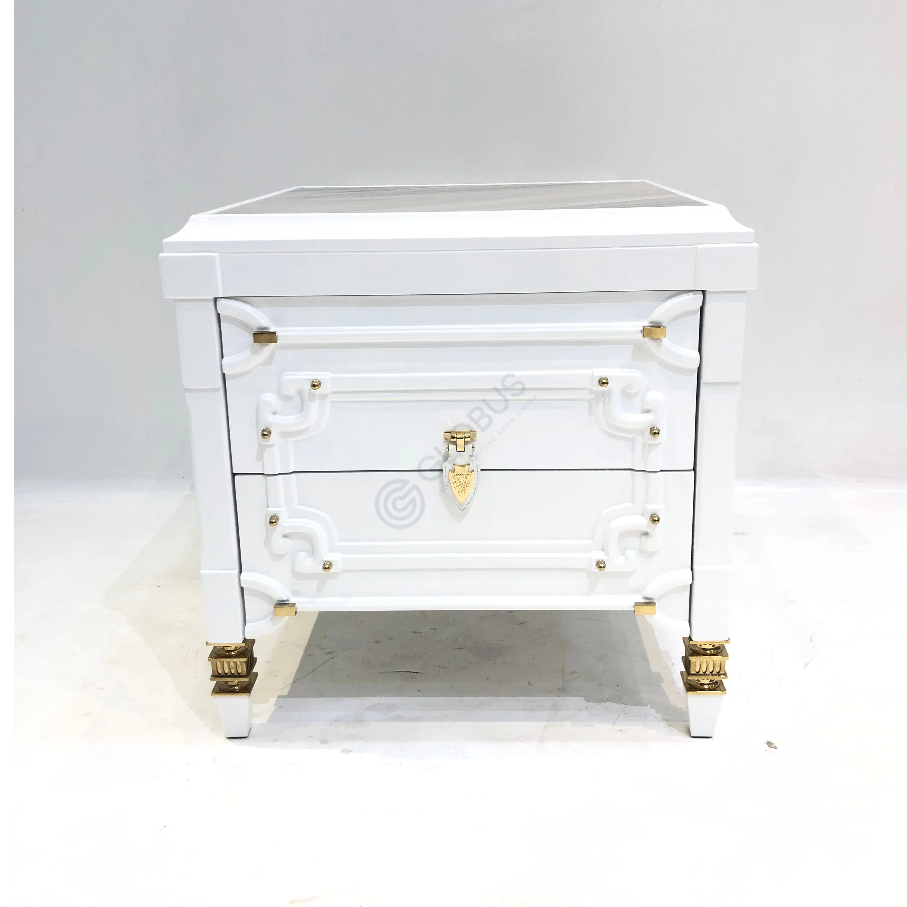 Nightstands: A convenience within arm's distance, white nightstands are more than functional furniture; they are an extension of the bedroom's designed coherence. White nightstands can range from sleek pieces with stylish lines and muted metallic knobs, perfect for a modern style, to more opulent pieces with delicate carvings, flared legs, or decorative hardware in gold, silver, or crystal for a sophisticated or traditional look. In a luxury setting, these items are seldom without thoughtful touches, such as quiet-close drawers for discreet operation, integrated USB charging points, or unobtrusive compartments, uniting refined beauty with luxury function. Discover solid wood construction in robust white finishes (lacquer, paint) or even materials with marble, glass, or mirrored details for an added level of sophistication.